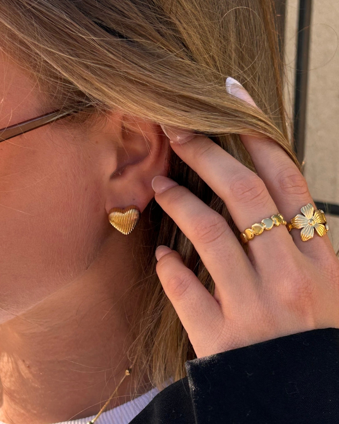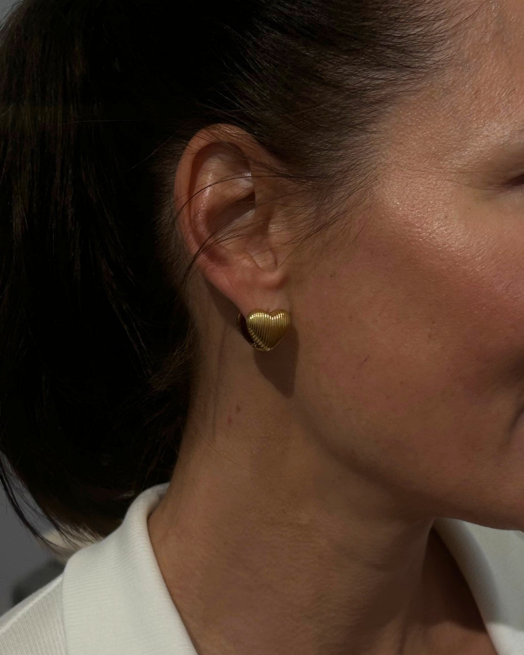 Die Amora Ohrringe verbinden verspielte Romantik mit klarer Formensprache. Das vertikale Herz-Motiv bringt Bewegung ins Design, während die polierte 18K PVD-Vergoldung warmen Glanz verleiht. Gefertigt aus hochwertigem Edelstahl, überzeugen die Ohrringe durch langlebige Farbstabilität, robuste Oberfläche und angenehmen Tragekomfort.
